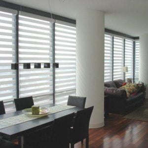 Rèm cầu vồng là một sản phẩm độc đáo. Vải được dệt theo dạng sáng – tối (một khoảng chắn sáng – một khoảng sheer) đan xen và lặp lại liên tục. Với 2 lớp vải trên cùng một bộ mành, việc điều chỉnh ánh sáng vào trong phòng trở nên dễ dàng và tiện lợi.